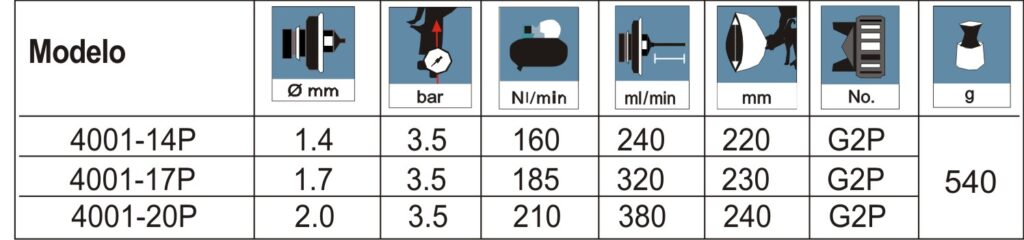 CARACTERÍSTICAS: PISTOLA DE PINTURA DE PRESSÃO 4001P