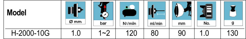 A Pistola para Retoque e Aerógrafo H-2000G possui: